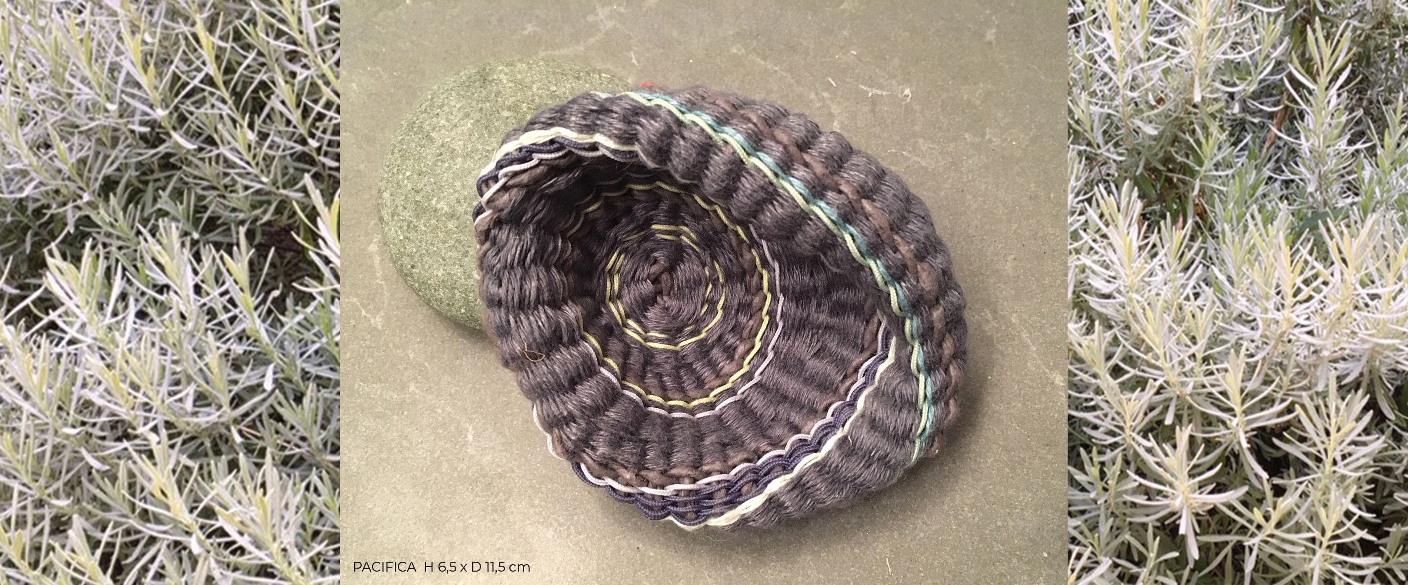 Inspired by a real or imaginary journey, each piece is a unique encounter of colour, form and texture in a threadspace.