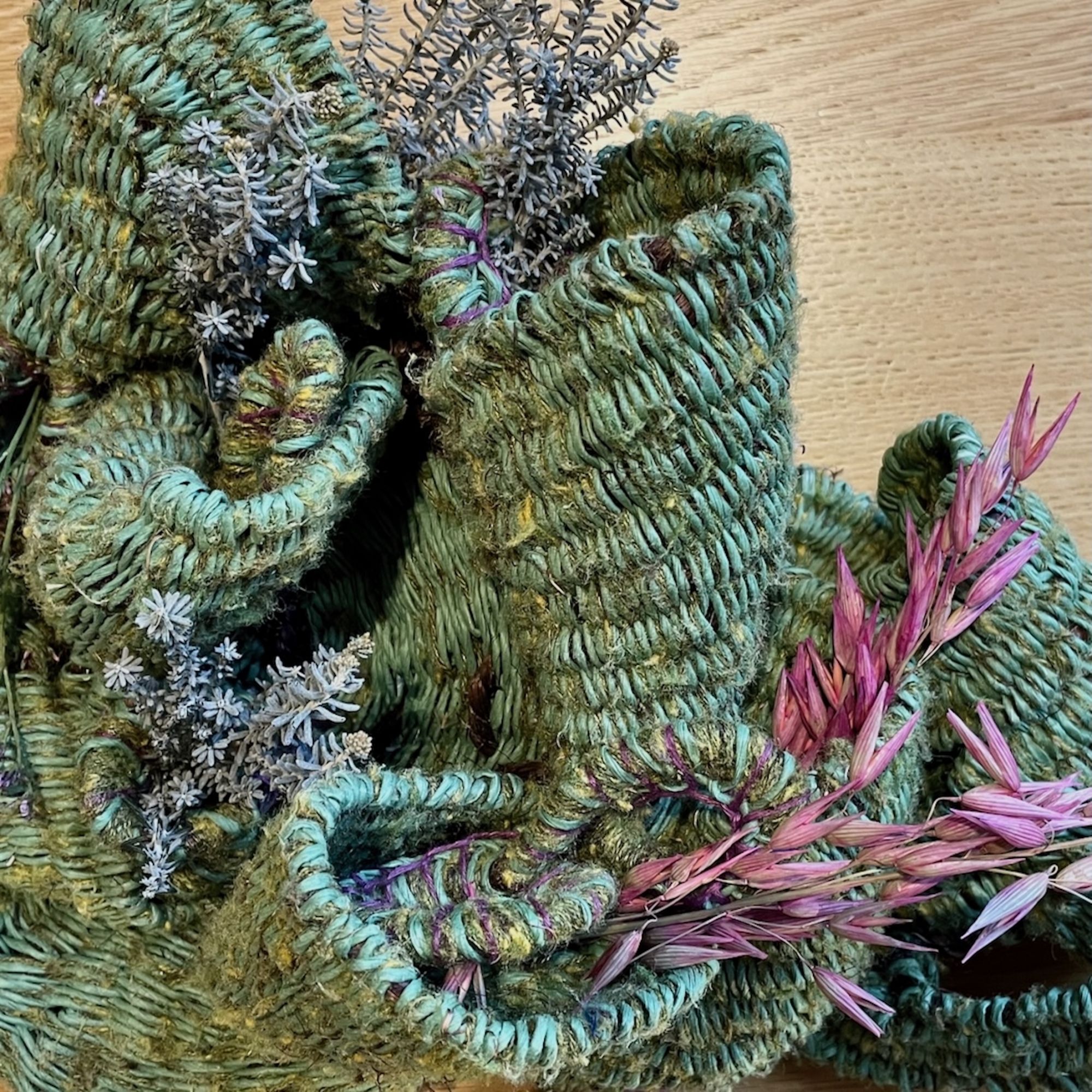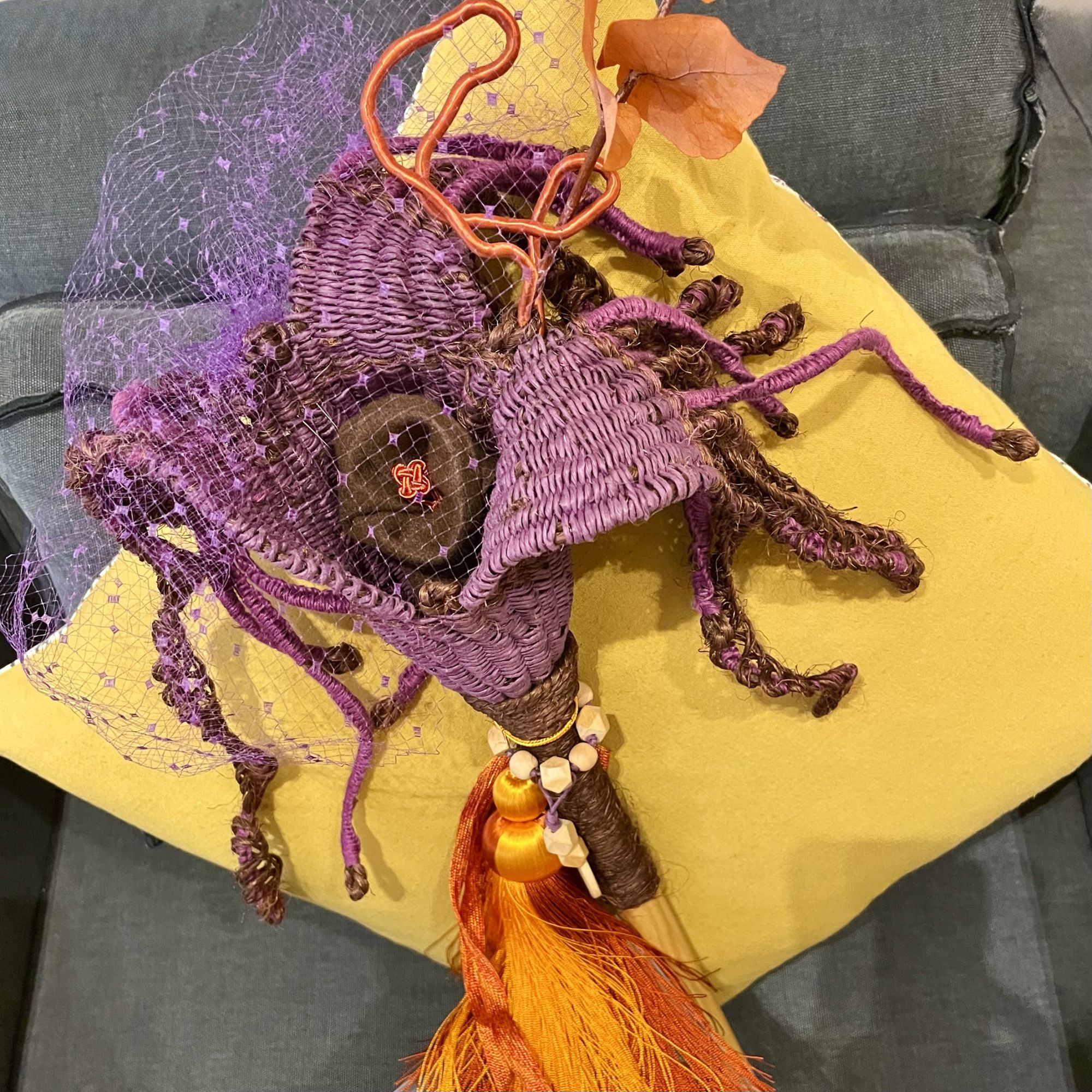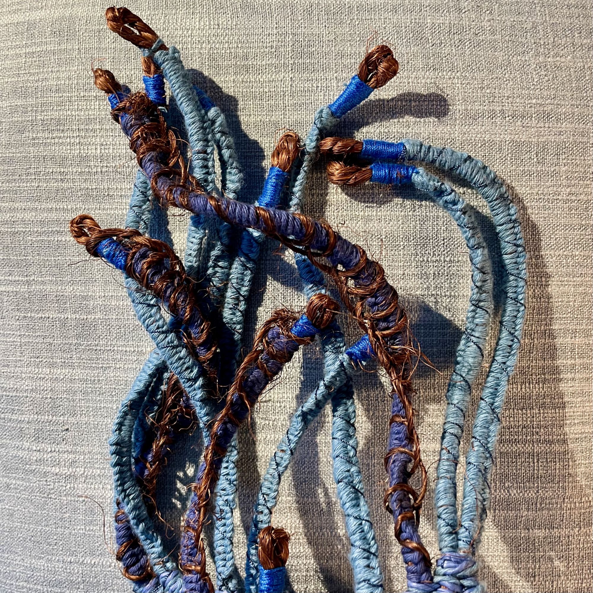 Alliance of sisal, cotton, mohair, silk, braided cord, textiles & stone beads